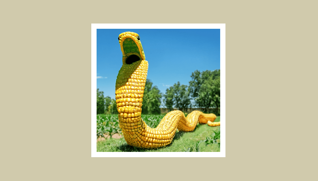 O ancora: che dire dell’immagine di un gigantesco cobra di mais all’interno di un campo di grano o di quella di un astronauta procione che osserva la città di notte.