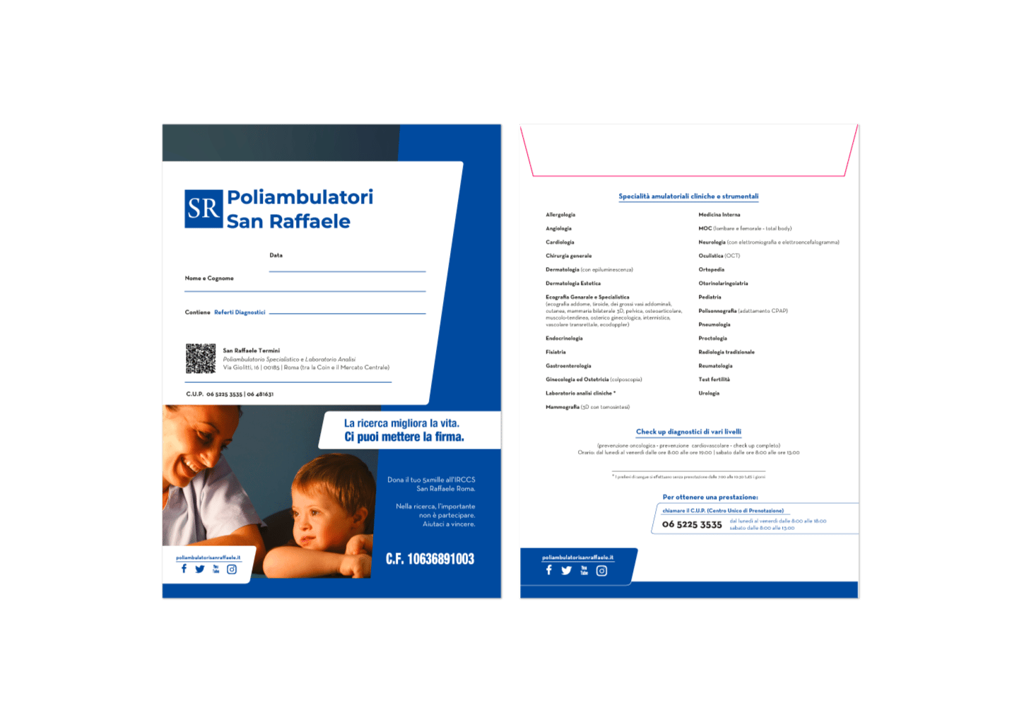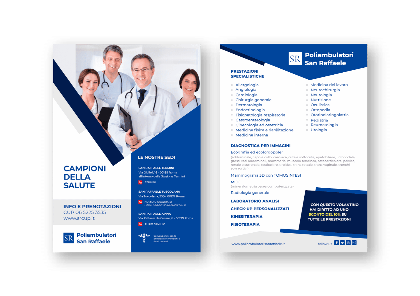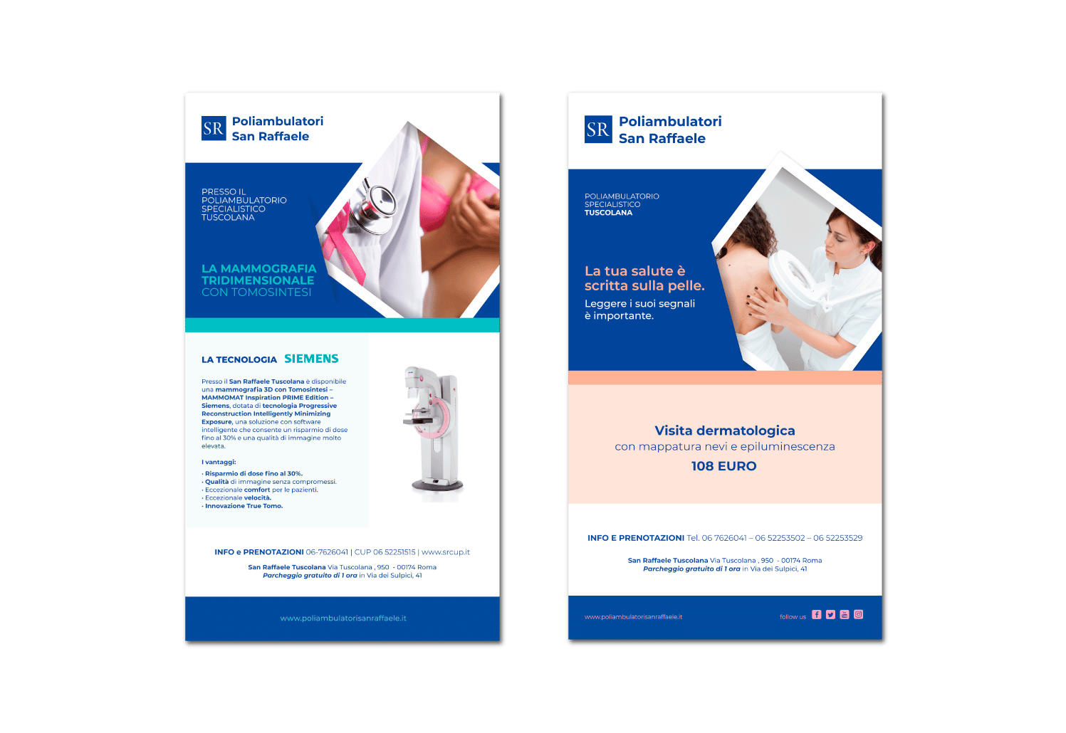 Il piano di comunicazione studiato per i Poliambulatori San Raffaele riserva il giusto spazio anche alle campagne pubblicitarie offline. Humankey si è occupata della ideazione e della realizzazione di manifesti, locandine, depliant e cataloghi generali.