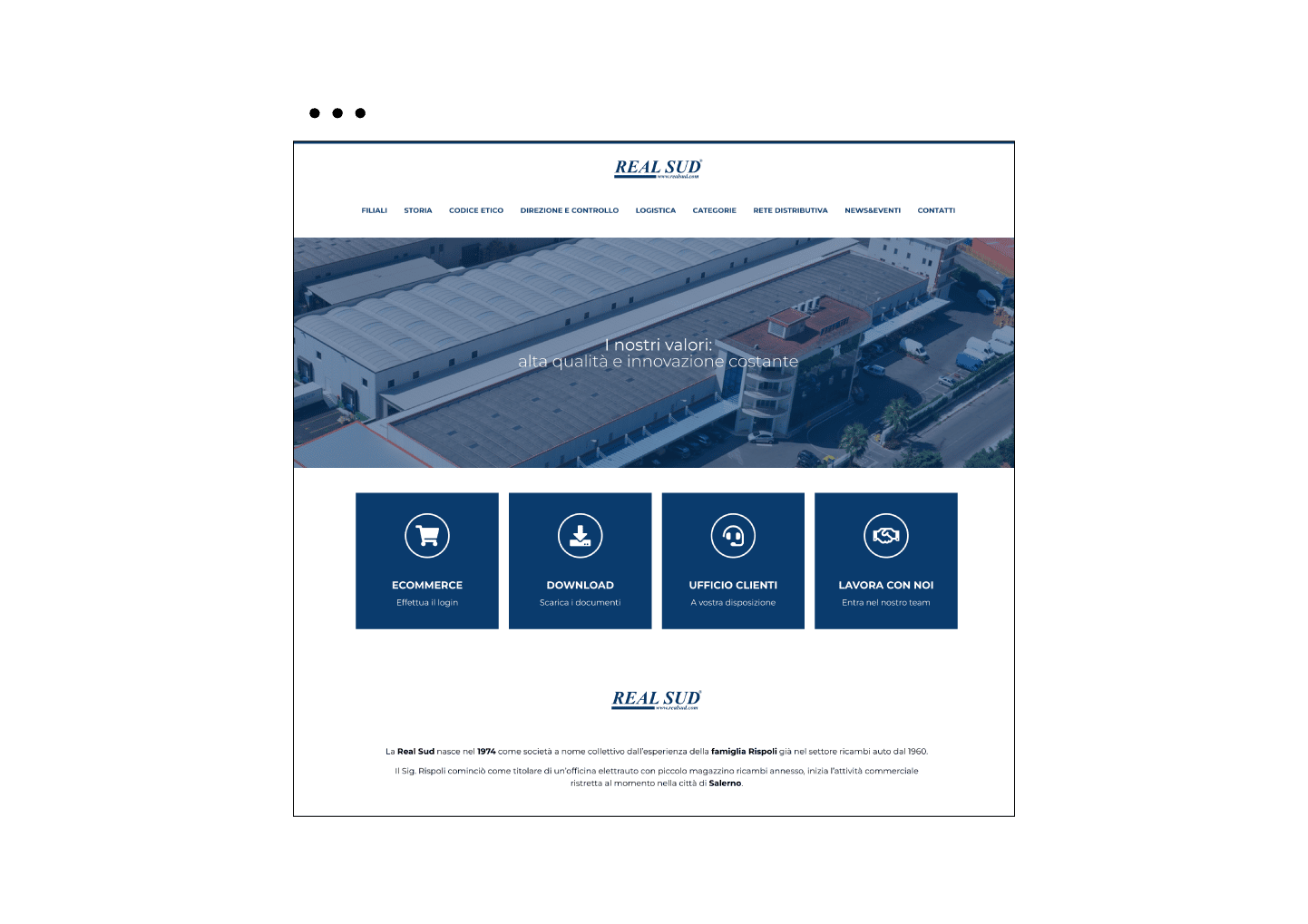 La Real Sud nasce nel 1974 come società a nome collettivo dall’esperienza della famiglia Rispoli. Nel 1998 la Real Sud diventaleader del settore ricambi e diventa Società per Azioni. Oggi l’azienda distribuisce a clienti ricambisti, ha 70 dipendenti e una flotta di vettori esterni in continuo movimento.